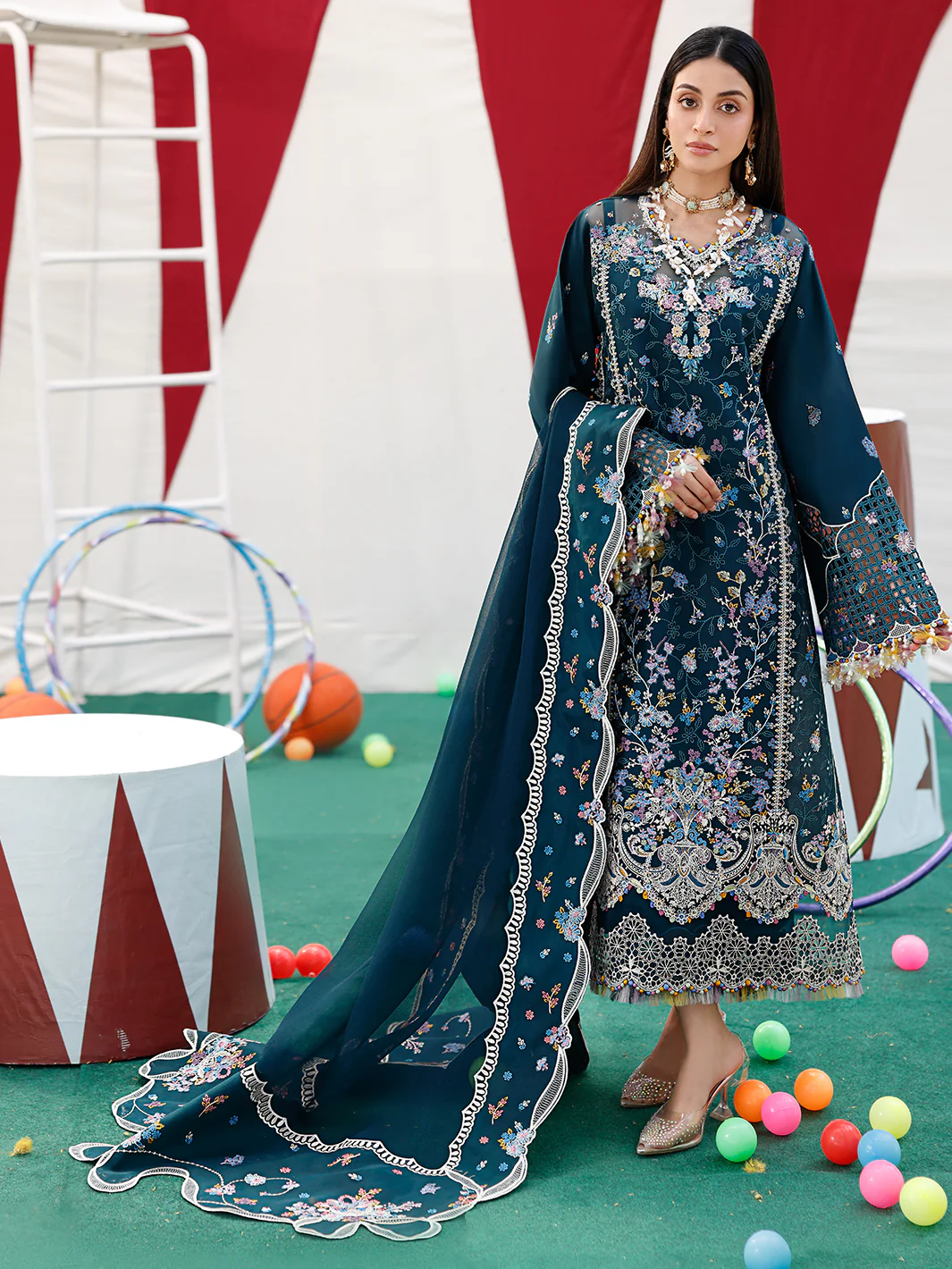 | Embroidered Duppata Pallo On Dyed Fabric | 2 Pieces |