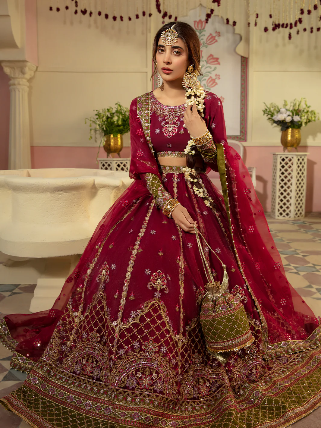 Sequence Embroidered Front& Back Kalian on Dyed Net